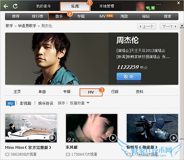3、也可以在【乐库】中选择【歌手】,选择自己喜欢的明星,观看MV噢!