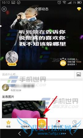 1)打开【QQ空间】,接着点击下方【+】。(如下图)