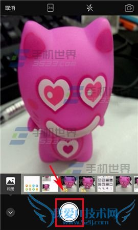 2)点击【贴纸相机】,点击【拍照按钮】先拍取一张照片。(如下图)