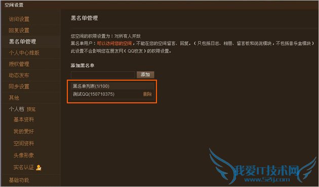 进入您的QQ空间,点击“空间设置”,选择“黑名单管理”,在此页面您可以添加好友的QQ号码成为黑名单用户,添加成功后该好友不能在您的空间留言、回复(只包括日志、相册、留言板模块,不包括音乐盒、心情模块)。但可以访问您的QQ空间。