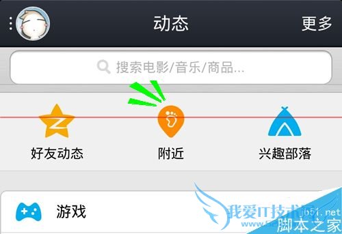 2、在动态这里,你应该是毫无疑问地点击[附近]才没找错地方哦