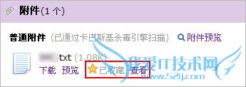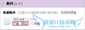 含有附件的邮件都带一个回形针的附件提示图形,阅读邮件时,在正文下方,您可以“预览”(支持doc、txt、log、ppt、mp3、asf、wmv、wma、mpg、htm、html、mht、eml、ico、pdf、avi、jpg、bmp、gif、png类型文件)或者点击“下载”保存该附件到本地,如果您收藏了附件,则可以直接查看该附件。