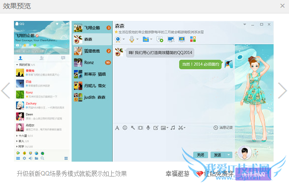 3、点击后会有许多图片,根据自己爱好选择,最后选择保存即可,小编在此提示此功能是QQ红钻特享哦,效果图如下。