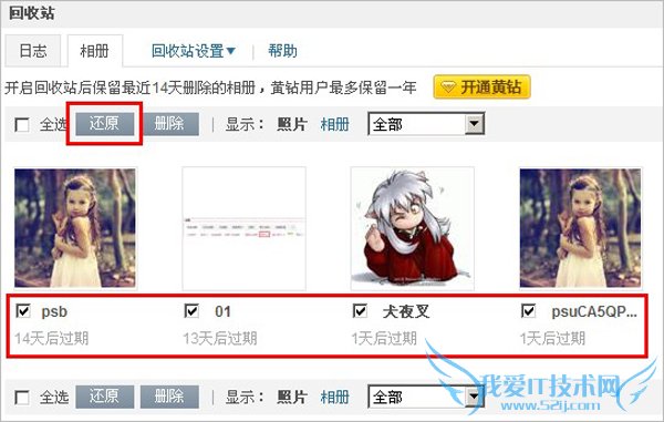 4、删除后的照片在日志、动感影集等处的引用马上会失效,照片恢复后在日志动感影集等处的引用将重新生效;