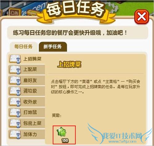 7、进行餐厅的每日活动,完成任务后都会获得相应的经验值(具体经验值会显示在每项任务说明下方)。