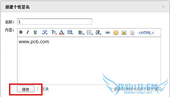 3、在新建个性签名中,我们输入自己想要的输入的内容,点击“保存”