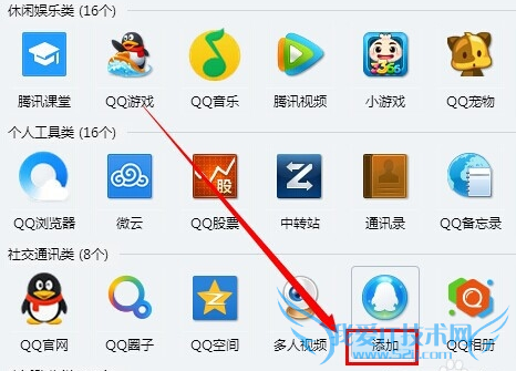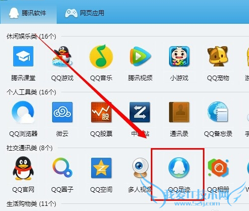 2、找到qq足迹,可以直接打开。当然为了方便可以添加到主面板,选中qq足迹。
