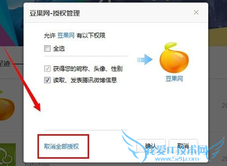 7、如果选择取消全部授权,点击确定后,也就取消用qq登录该网站的权限。
