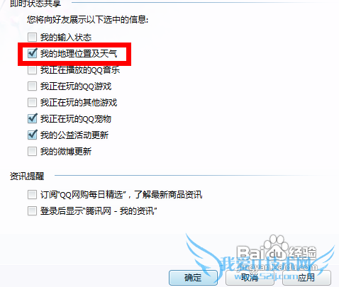 点击之后在界面右边会有一系列设置选项,将我的地理位置及天气前面的钩去掉。