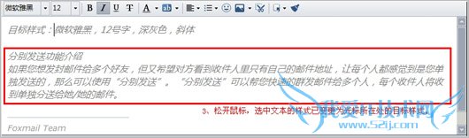 1、在“写邮件”窗口,将光标定位至目标样式文本处。