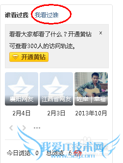 2、点击后,将鼠标往下拉, 右下角会出现一个访客记录,找到“我看过谁”如下图