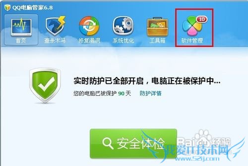2.安装adobe flash player最新版本我们可以进入官网下载。一般都不怎么清楚最新版本是多少。不过我们可以安装电脑管家。上面会有显示最新版本。比如安装的QQ电脑管家里面会有一个软件管理选项。
