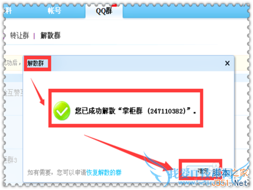 看到了吧 ,系统提醒:你已成功解散了掌柜群。点确定就OK了。