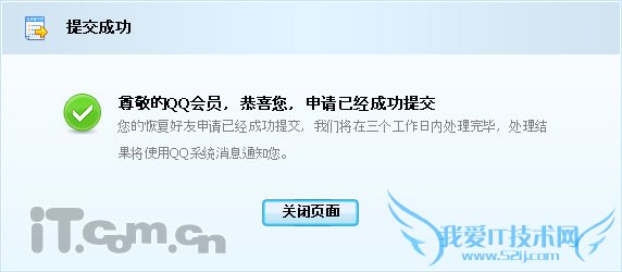 选择恢复范围后单击提交按钮,就会提交恢复QQ好友的申请,你的申请最迟会在3个工作日内处理完毕,处理结果将使用QQ系统消息通知你。