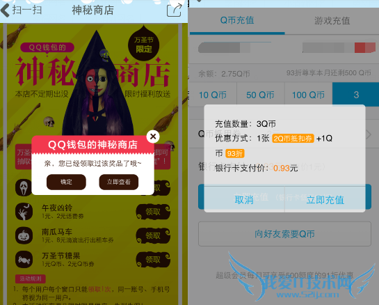 3、支付成功后,即可领取奖励,小编抽到的是2元Q币券,支付1元即可获得3Q币哦!