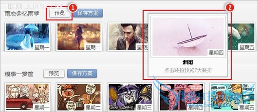 4、点击“保存方案”,即可成功保存此套装扮方案,将按照周一到周日的顺序每日自动切换。(如果在保存方案后,修改并保存了当前的空间装扮,则会替换相应星期n的装扮)