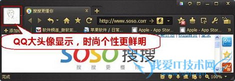 秋高气爽人豪迈,QQ浏览器也有大气时尚的大头像显示,满足用户的个性化需求。用户在一键登录QQ帐号后,浏览器窗口左上角显示QQ大头像,让浏览器更具时尚个性气息,打造专属浏览器。(图3)