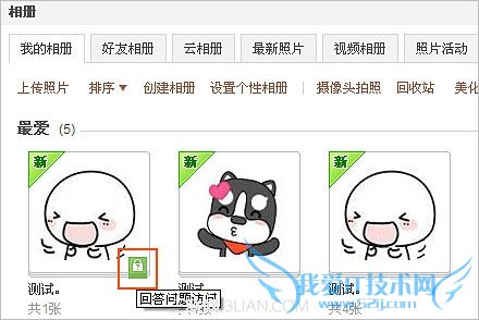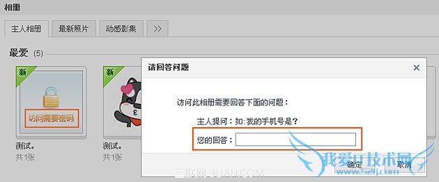 第四步:当他人点击该加密后的相册时,将弹出如下图所示的对话框,只有当他填写的答案与您设置的答案完全一致,才能访问该相册里的照片。