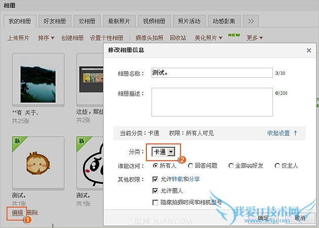 首先,您可以点击每个相册下方的“编辑”按钮,在弹出的“修改相册信息”对话框中,修改该相册的类别。