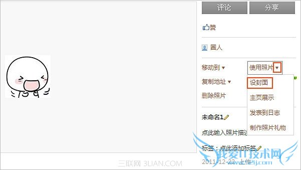第三步:此时,我们只需单击该图片的缩略图,进入大图浏览界面,如下图所示,然后单击又上角的‘使用图片’-“设封面”,即可完成封面设置;