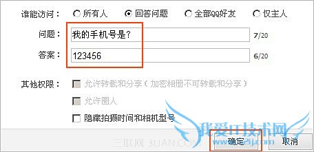 2、如果您只希望一部分人可以访问该相册,可以选择“回答问题”方式;详细操作如下: