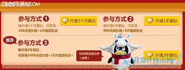 QQ黄钻推出了新年活动“马上有红包”,所有用户通过在活动页面均可免费领取新年绝版和卡当台历,另外通过开通和续费黄钻,还可获得成长值和抽奖机会,可以抽取ipadmini2、黄钻1个月、三亚-香港4天游奖励,用户每开通3年黄钻,就必得一个QQ马年生肖公仔,黄钻活动首发,数量有限,错过一定会后悔!