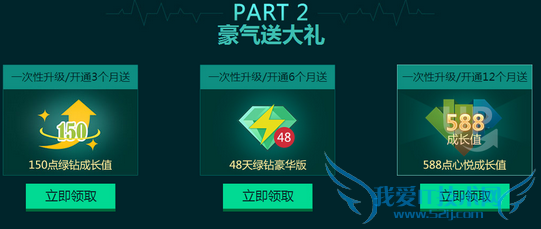 4.一次性开通/升级绿钻豪华版3个月可获赠150点绿钻成长值,一次性开通/升级6个月可获赠48天绿钻豪华版,一次性开通/升级12个月可领取588点心悦成长值,以上所有奖品限领1次;