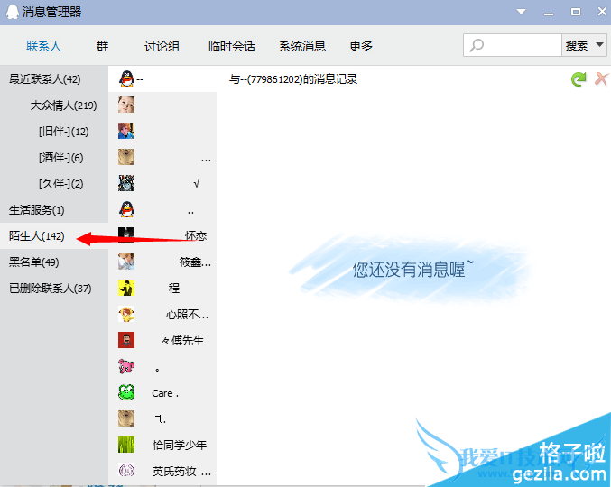 3、虽然陌生人里也可以看到,但是陌生人太多,没有和你聊天的也在这里面。