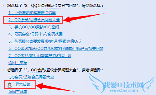 6、选择第2项(QQ会员/超级会员问题大全) —— 选择 “异常反馈”