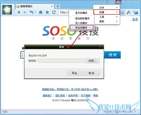 收藏夹中是不是收藏有自己喜爱的网站、精彩网址,是不是很希望在任何地方都可以浏览其中的内容? QQ浏览器6.2正式版支持收藏夹导出功能,满足了很多用户希望能够随身携带自己喜欢的网址的需求。在“主菜单”“收藏夹”中选择“导出收藏夹”,选择保 存目录即可导出,而HTML格式的收藏夹,便于直观显示查看,也方便导入,界面显示及操作更友好。