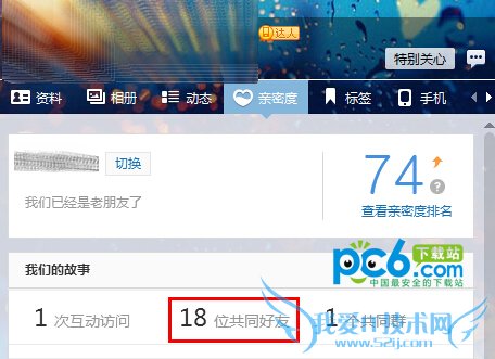 2.然后选择亲密度,就可以看到共同好友有多少个啦。不过此方法不知道共同好友具体是哪些。
