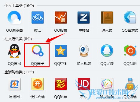 2.在管理器页面中,我们可以找到QQ圈子按钮,点击打开它