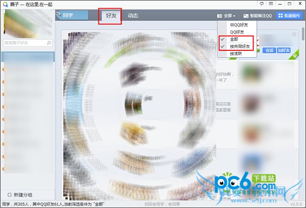 3.这时,选择QQ好友,并在右边勾选全部和按共同好友,就可以看到全部的QQ共同好友有哪些。