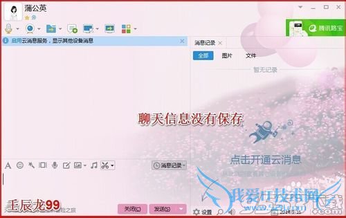 6、退出QQ,再重新登录QQ,打开刚才发送了的聊天窗口,我们可以看到,聊天窗口和消息记录窗口的“你好!”都没有了,QQ不保存聊天信息设置成功。