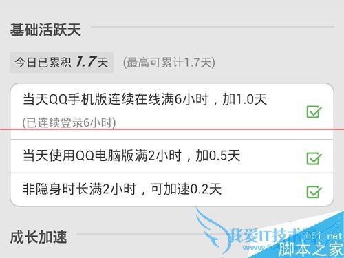 4、然后你往下面找到【基本加速】的第一个加速任务,这里可以查看你当前已连续登录QQ的时间,当然这个时间只能显示整数,无法具体查看登录时间点。