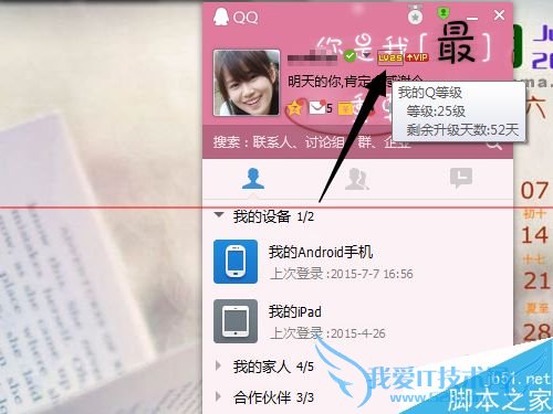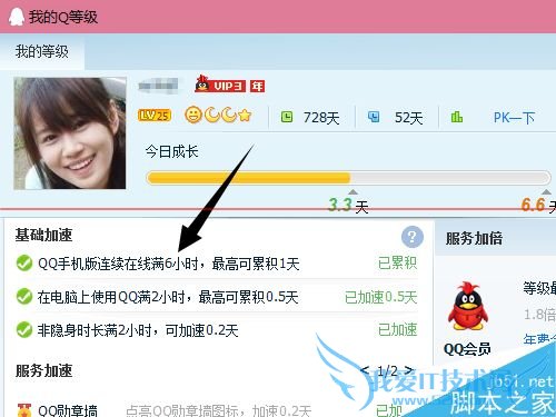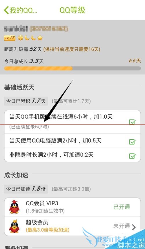2、由于在手机上登录满了6个小时可以完成加速任务,所以在无法查看设备登录时间的时候,可以以点击QQ等级。