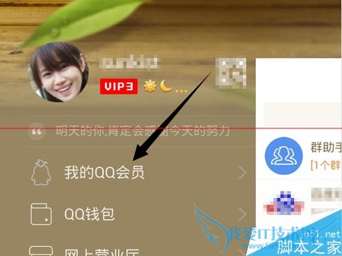 2、点击第一项,如果你是QQ会员这里会显示【我的QQ会员】,如果你只是普通QQ用户则显示为【开通QQ会员】。