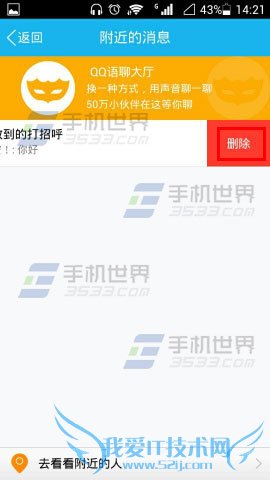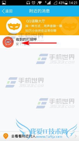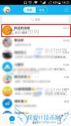1)首先先打开【手机QQ】,点击消息,就能看到附近的人发来的消息并点击进去。(如下图)