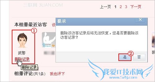 3、本相册最近访客的记录,只有该访客本人与主人有权删除该记录。