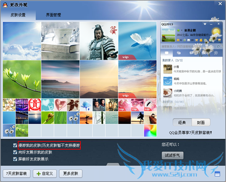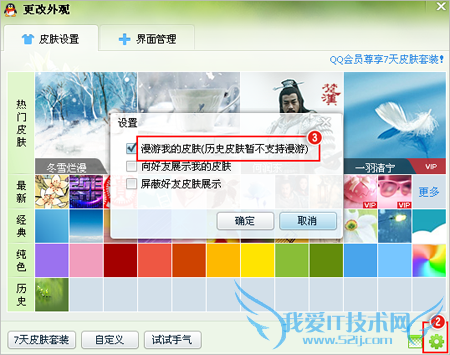 2012版本:打开任意好友聊天窗口=》皮肤管理=》右下角设置=》漫游我的皮肤;