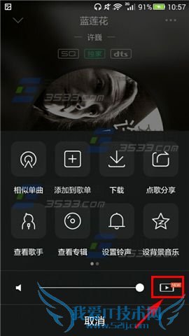 2)点击【歌曲封面】,点击右下角的【横屏标志】就可以进入横屏模式了。(如下图)