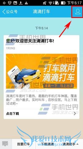 2)然后点击你想要取消的公众号。进入后点击右上角的人形图标。(如下图)