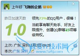 在QQ面板昵称旁边直接显示QQ等级多少级,且是否在加速一目了然。
