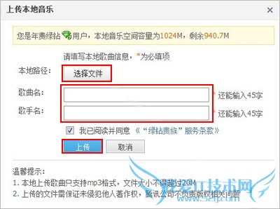 注:本地音乐空间容量为1024M,只有上传的本地音乐的才会占用此内存。