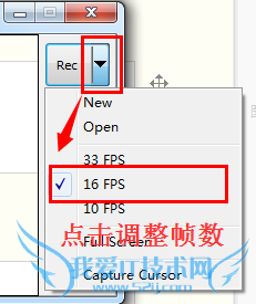 2、点击“REC”下拉箭头,点击“16FPS”,帧数的多少,可根据情况自己设定: