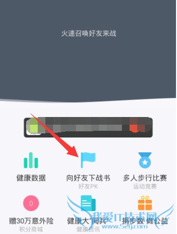 进入健康界面,可以看到具体的相关功能,点击【好友PK】