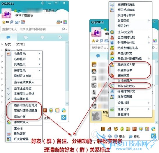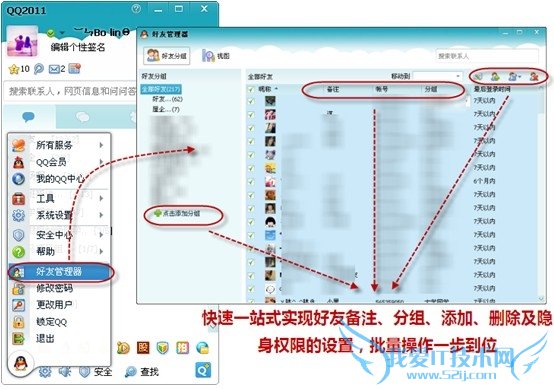除此之外,QQ2011版新增“好友管理器”,通过“好友管理器-好友分组”功能,我们可以快速一站式的实现好友备注、分组、添加、删除及隐身权限的设置,批量操作一步到位,既省事又舒心。(图2)