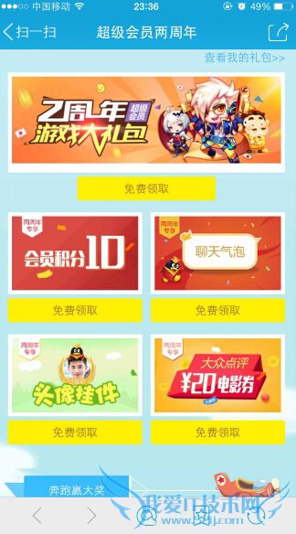 超级会员两周年福利活动,赶紧来参与吧!活动期间,超级用户可以免费领取会员积分、大众点评代金券、个性主题等礼品,还可以在参与奔跑赢大奖的游戏中获得更多的礼品哦,Q币、电影票、苹果表等你来抽哦!