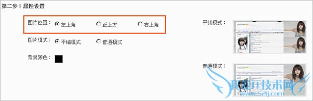 3、属性设置:上传完后就可以看到图片的展示效果,可根据喜好选择左上角、正上方、或右上角。