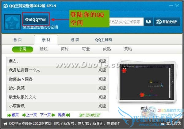 第一、打开你的QQ空间克隆器,用过老版的童鞋都看得出来,新版简洁漂亮了许多哦。
